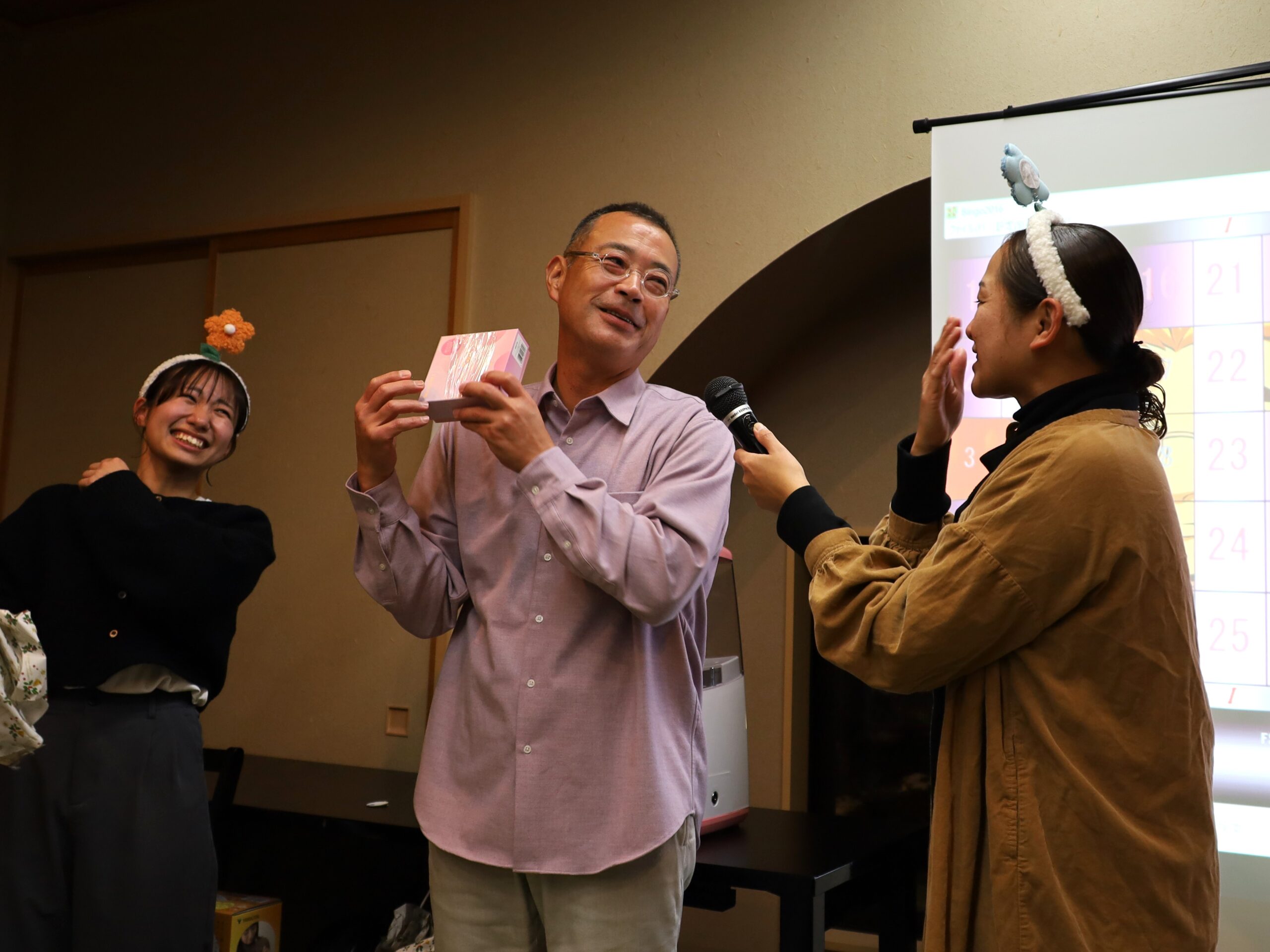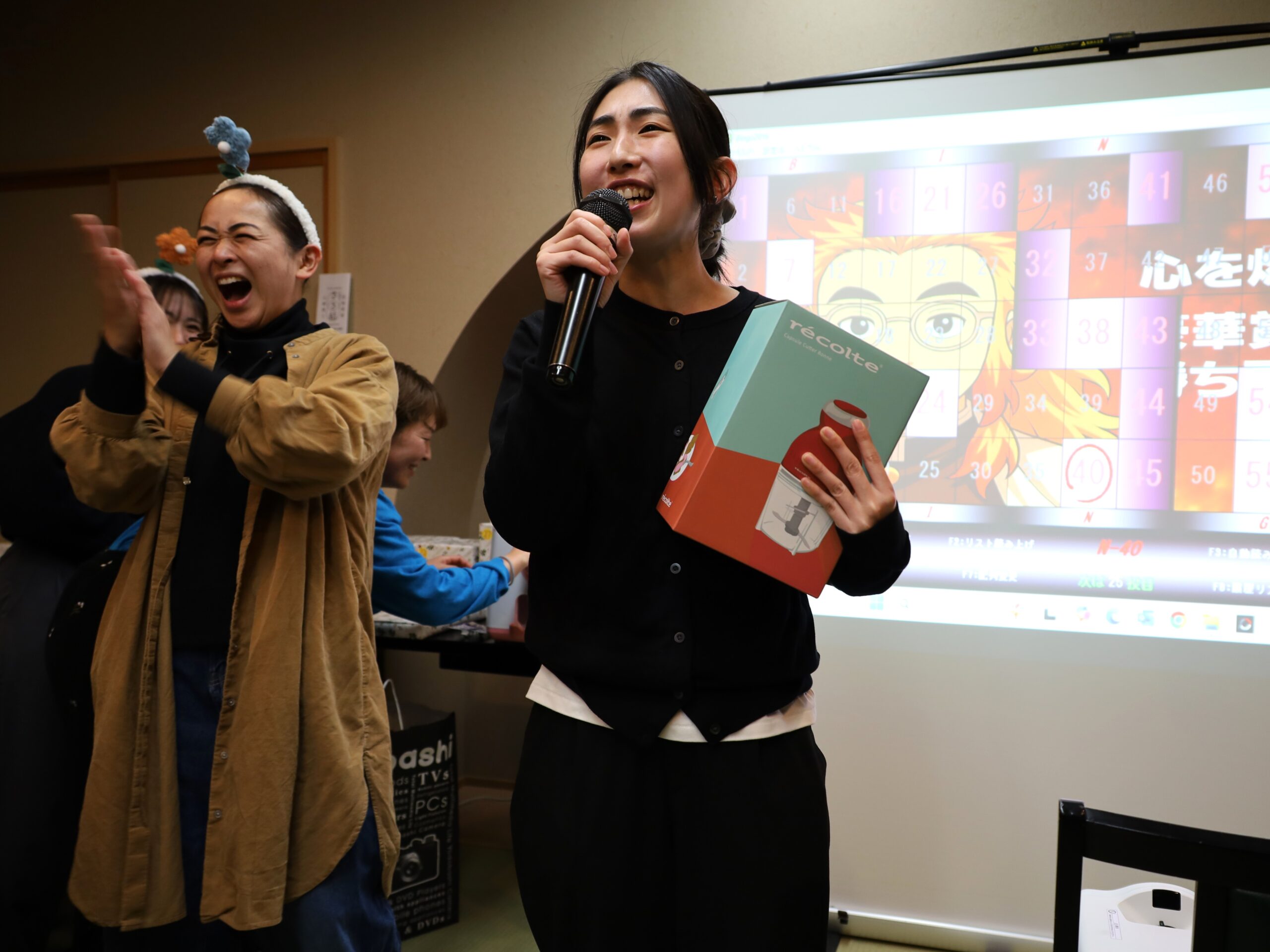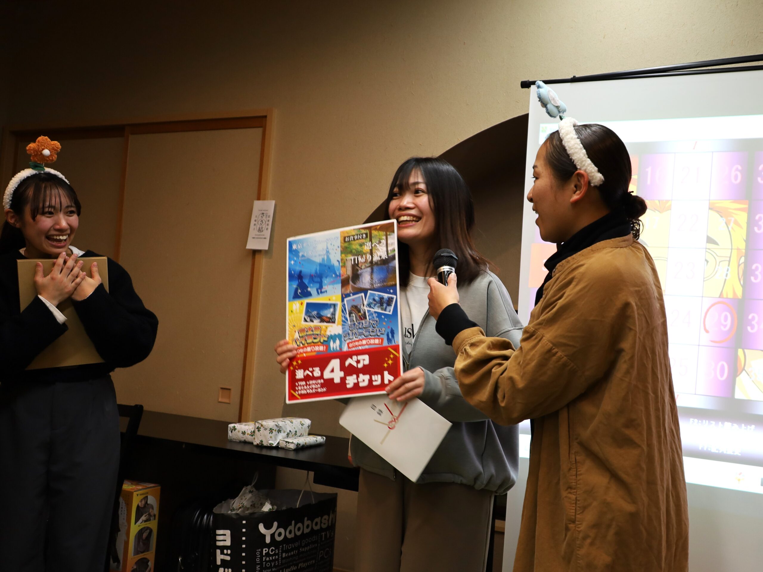 忘年会では、日頃から一生懸命頑張ってくれている職員に理事⻑が感謝の気持ちを込めて、全員分の景品を用意してくれています。